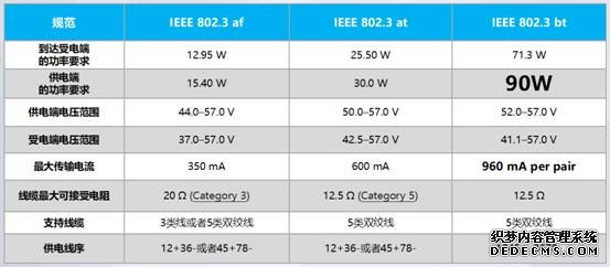 表一:PoE IEEE 802.3 af/at/bt 標準基礎(chǔ)參數(shù)