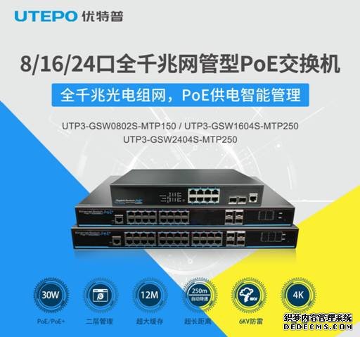 為滿足市場需求,優(yōu)特普推出了一系列長距離傳輸PoE供電交換機。例如,優(yōu)特普8/16/24口全千兆網(wǎng)管型PoE交換機支持自動降速協(xié)商,最遠傳輸距離可達250米,很好解決了個別區(qū)域網(wǎng)線傳輸距離不足的問題。