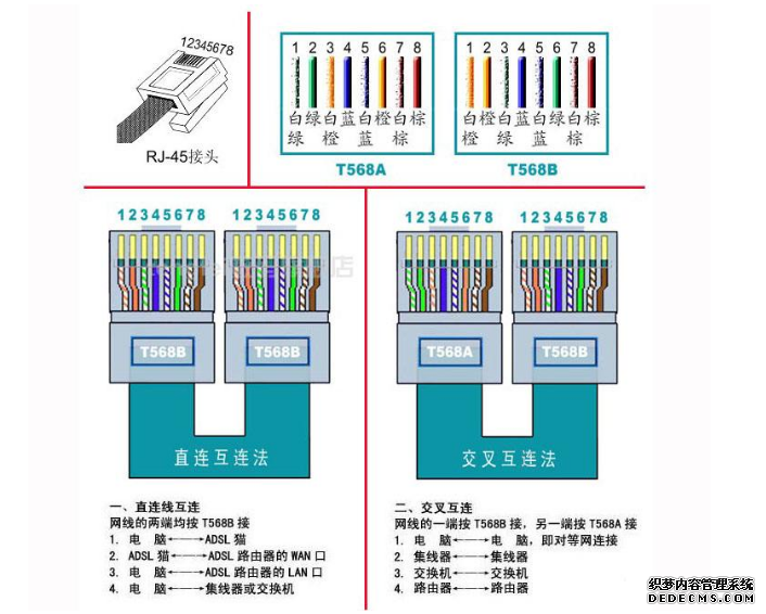 直通線:兩頭都按T568B線序標(biāo)準(zhǔn)連接。